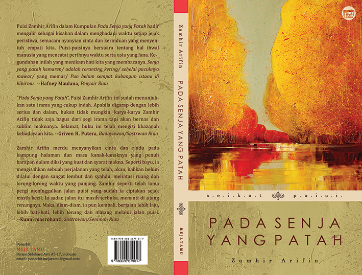 Puisi Zamhir Arifin dalam Kumpulan Pada Senja Yang Patah hadir mengalir sebagai kisahan dalam menghadapi waktu setiap jejak peristiwa, semacam nyanyian cinta dan kerinduan yang menyentuh empati kita. Puisi-puisinya bersuara tentang hal ihwal manusia yang mencatat perihnya waktu serta usia yang fana. Kegundahan inilah yang menikam hati kita yang membacanya. Senja yang patah kemaren/adalah reranting kering/sehelai pucuknya mawar/yang memar/Pun belum sempat kubangun istana di bibirmu. — Hafney Maulana, Penyair Riau