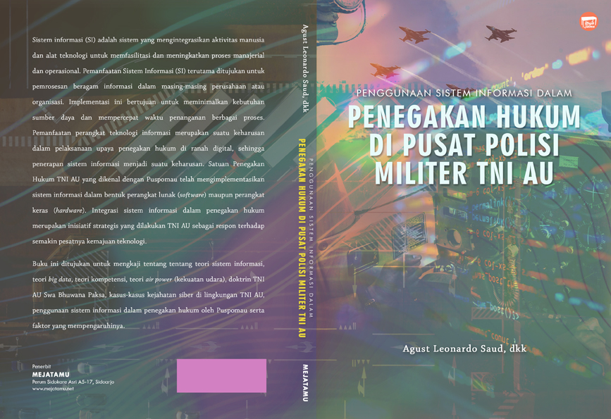 Buku ini ditujukan untuk mengkaji tentang tentang teori sistem informasi, teori big data, teori kompetensi, teori air power (kekuatan udara), doktrin TNI AU Swa Bhuwana Paksa, kasus-kasus kejahatan siber di lingkungan TNI AU, penggunaan sistem informasi dalam penegakan hukum oleh Puspomau serta faktor yang mempengaruhinya.